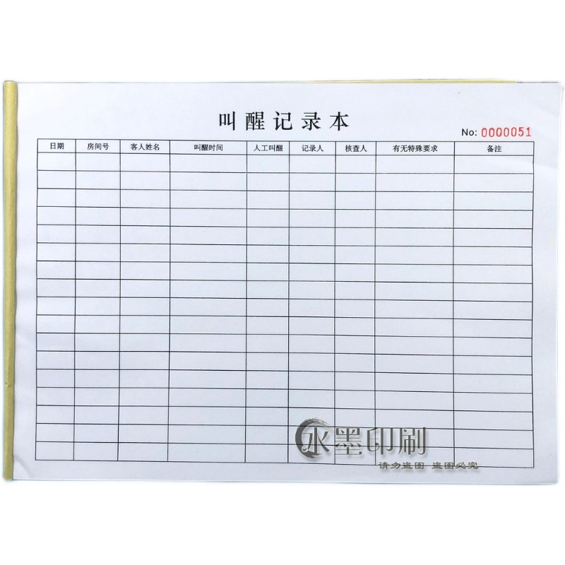 酒店顾客人工叫醒服务记录本定制旅店宾馆前台住店旅客叫醒登记本