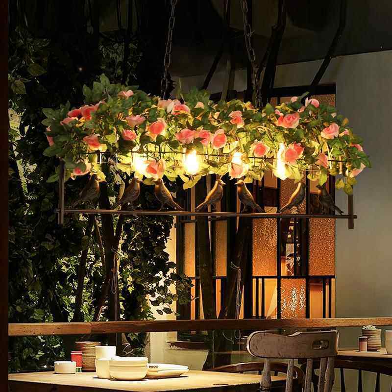 酒店餐桌餐厅植物吊灯音乐酒吧创意仿真花朵绿植灯具工业风装饰灯