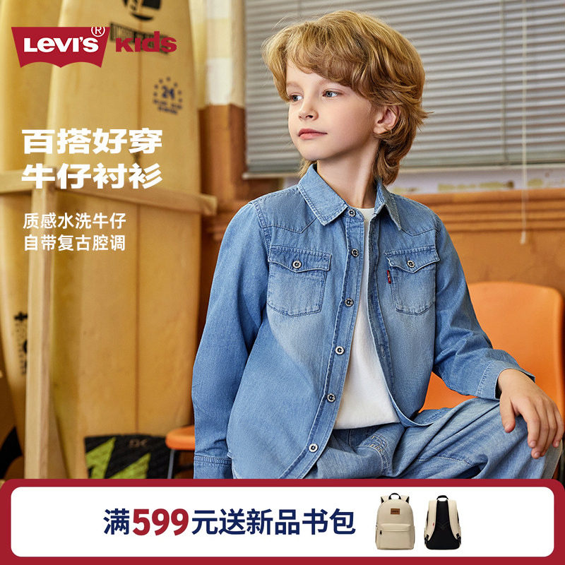 Levis李维斯儿童牛仔衬衫秋装新款经典水洗男童女童衬衣童装外套