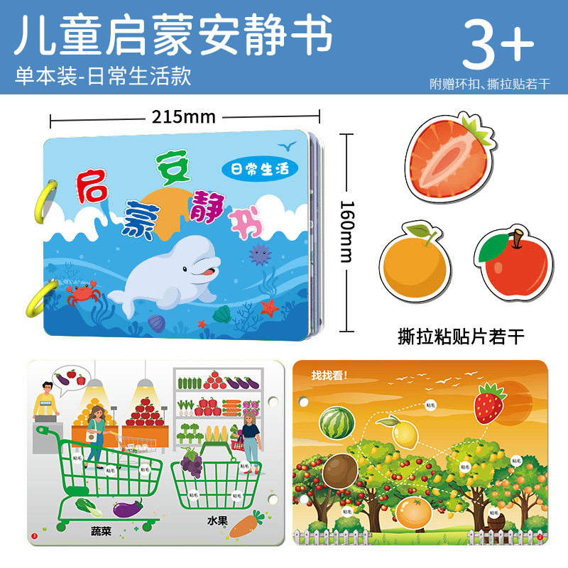 早教安静书启蒙早教书儿童宝宝撕撕书婴儿手撕书婴幼粘贴书益智