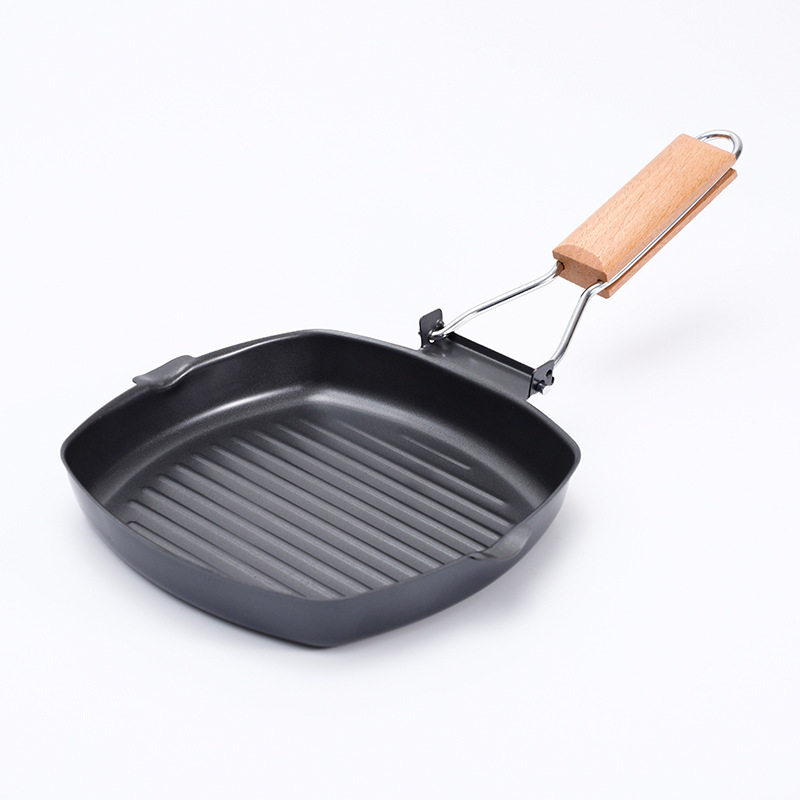 厂家直销西式煎烤不粘锅单底牛排锅可折叠电磁炉煤气罐通用