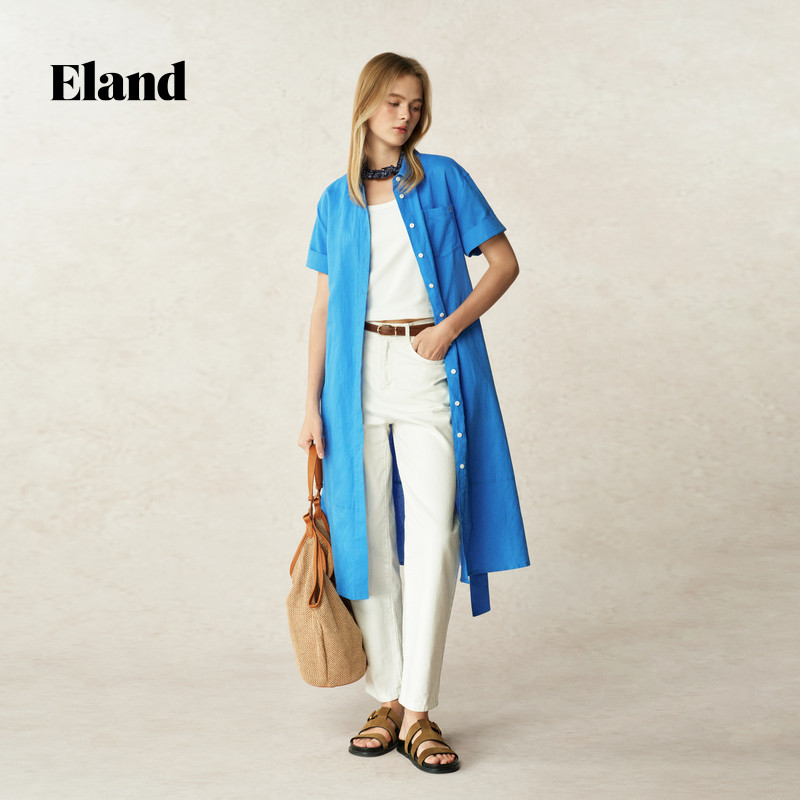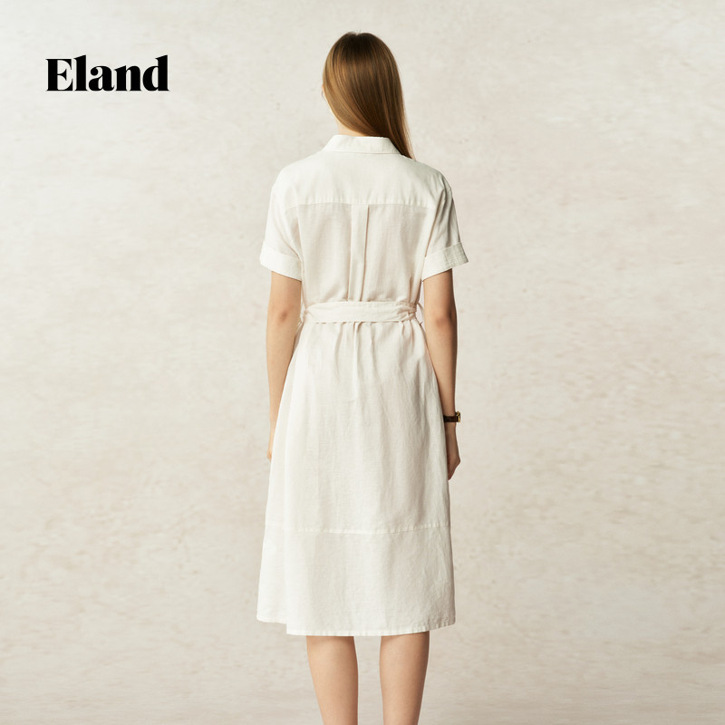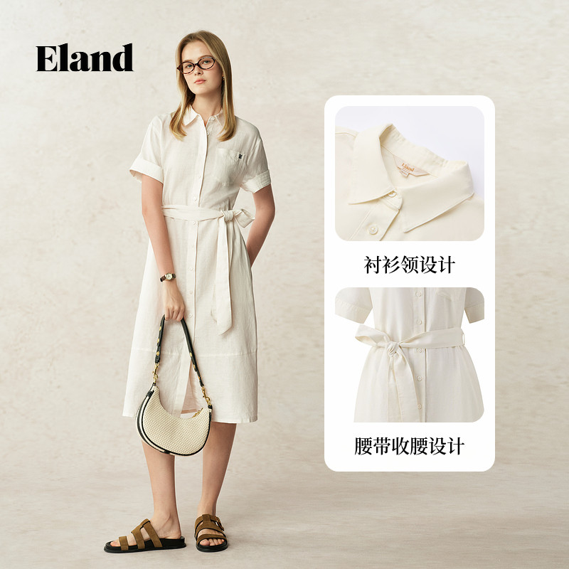 【亚麻+棉】Eland衣恋连衣裙女单排多扣翻领裙子2025夏季新款
