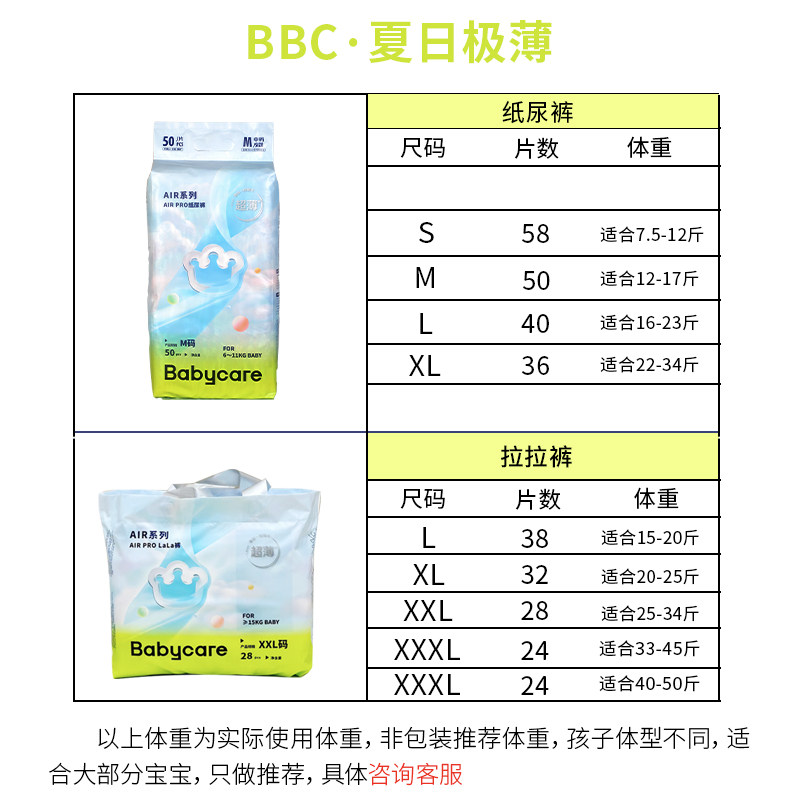 babycare纸尿裤MXXL新生婴儿尿不湿Airpro夏日极薄透气拉拉裤超薄