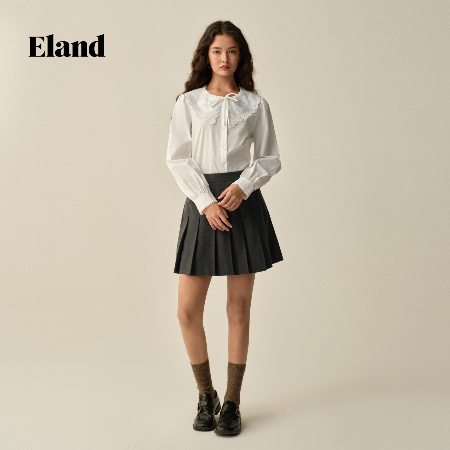 【100%棉】Eland衣恋衬衫女气质荷叶领长袖上衣2025冬季新款