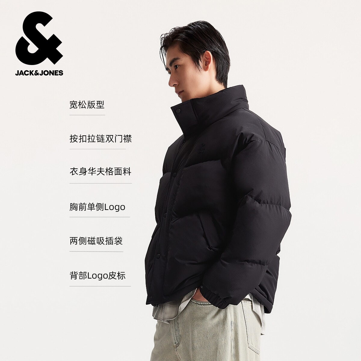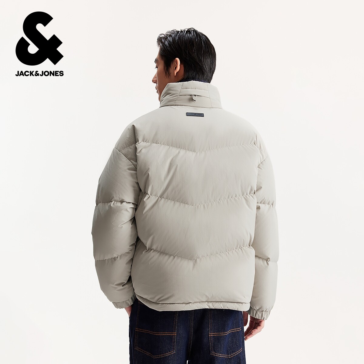 杰克琼斯男装冬季新款时尚简约华夫格弹力抽绳高领宽松羽绒服外套