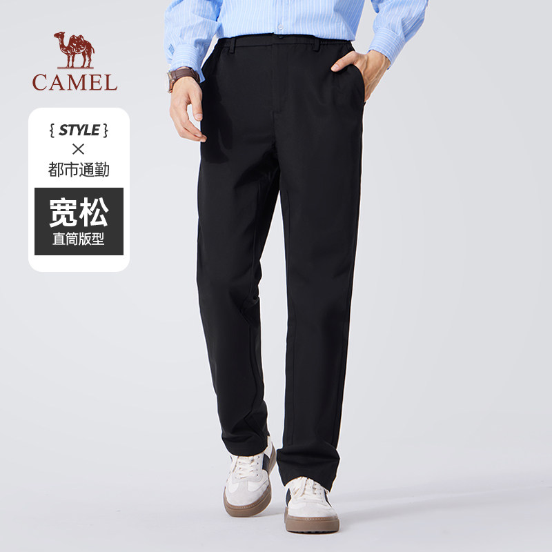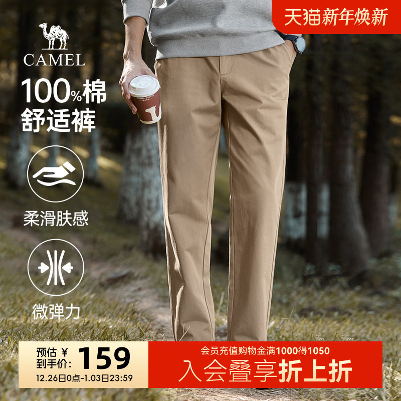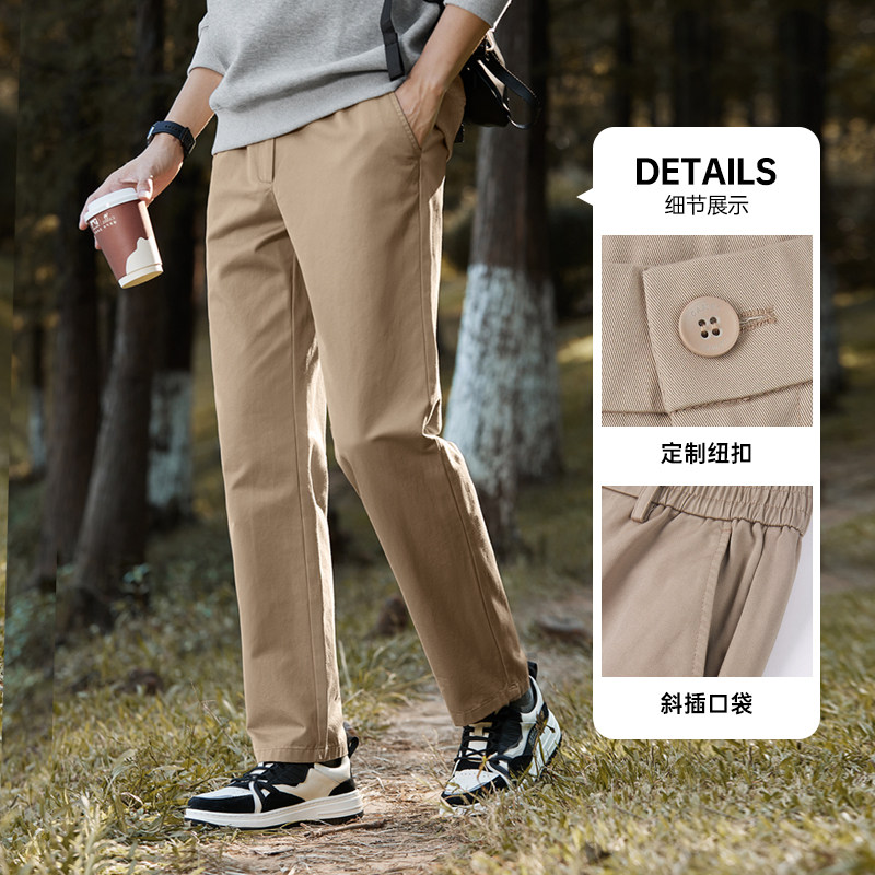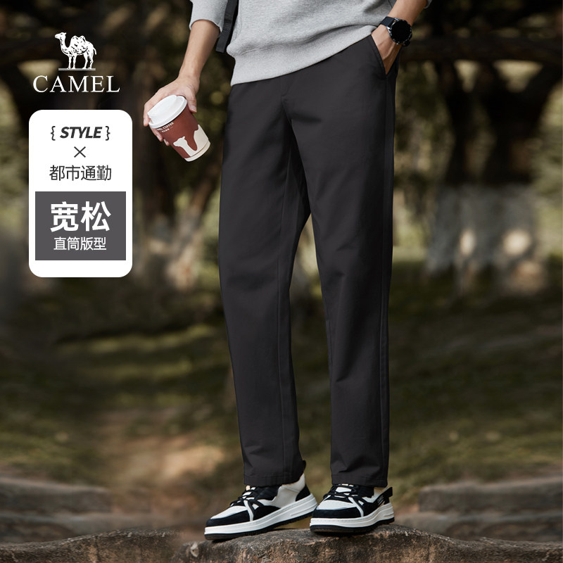 骆驼男装轻商务通勤休闲裤男秋季新款卡其色直筒长裤宽松纯棉裤子