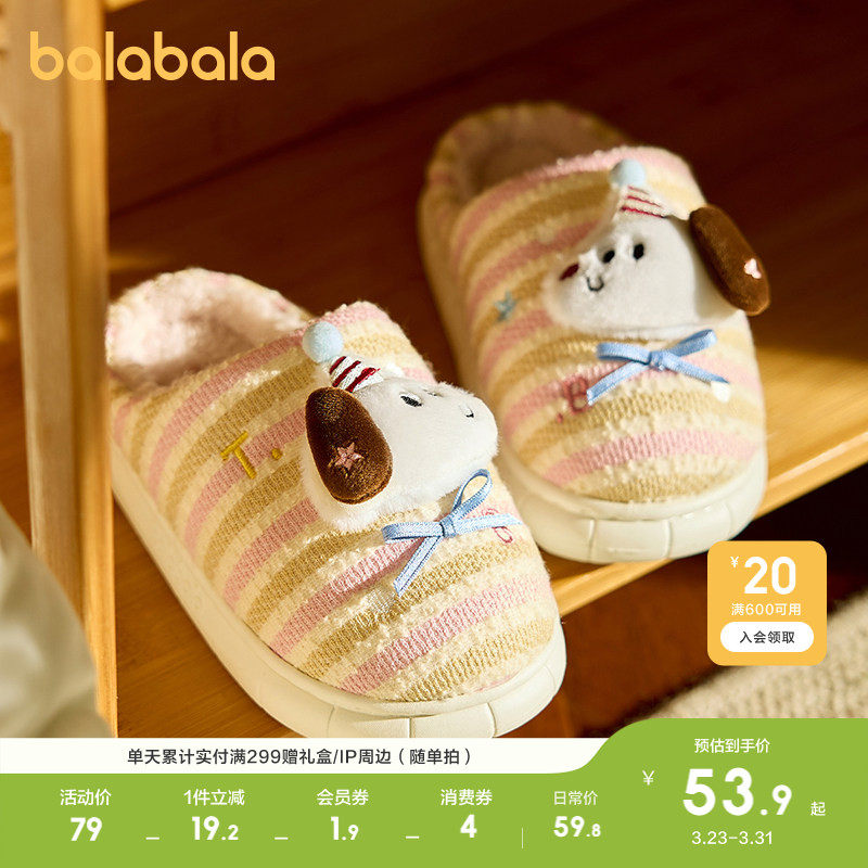 巴拉巴拉儿童棉拖鞋男童女童秋冬季宝宝室内家居可爱毛绒保暖拖鞋