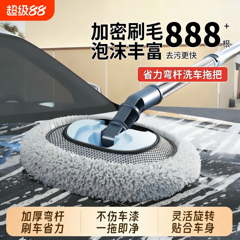 弯杆洗车拖把不伤车漆汽车刷子可伸缩软毛刷车用专用擦车工具神器