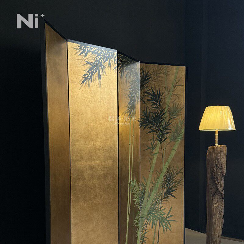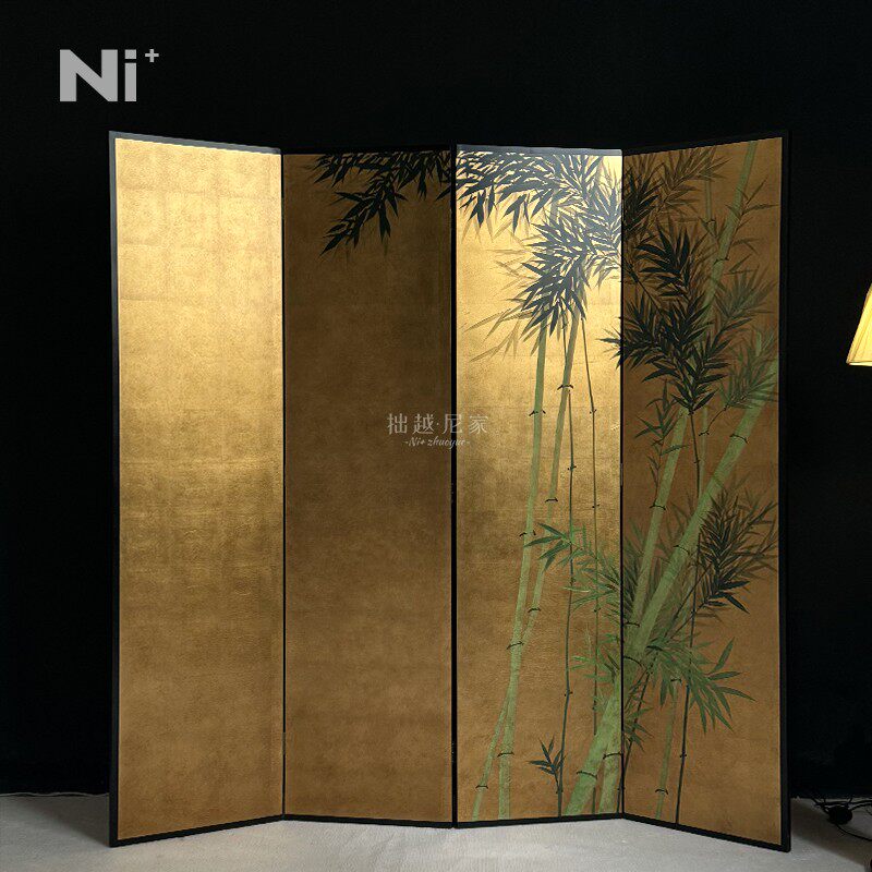 Ni+尼家手绘漆画竹子中式金箔屏风客厅茶室古筝背景婚纱摄影折屏