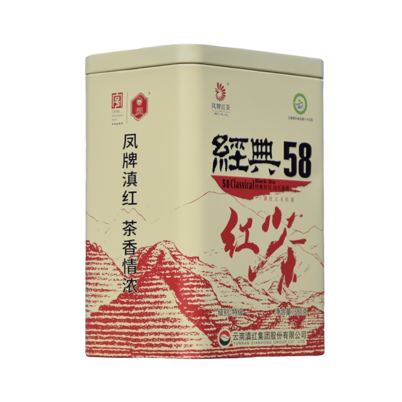 凤牌红茶经典58茶叶云南凤庆滇红茶特级新升级版方罐装浓香型380g