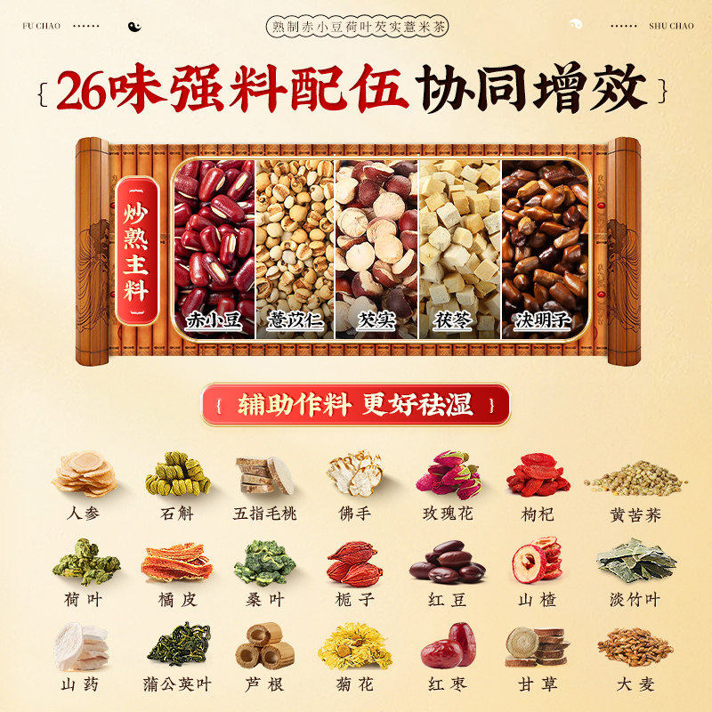 红豆薏米祛湿茶炒熟健养胃去湿气排毒体内湿气重脾陈皮茯苓养生茶