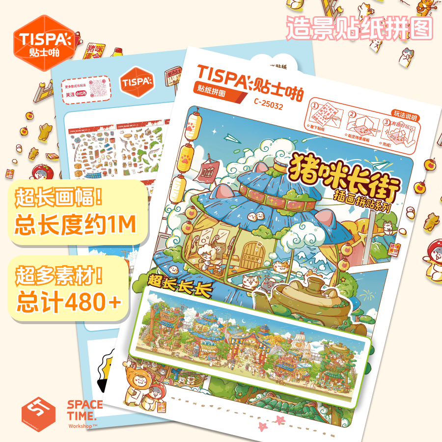 时空工坊猪咪长街喵子3.0大版造景贴纸拼图3D微缩小屋可爱DIY手账