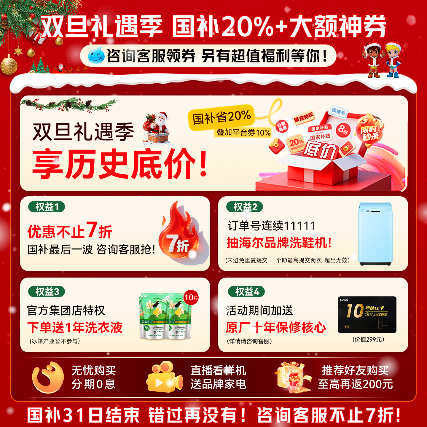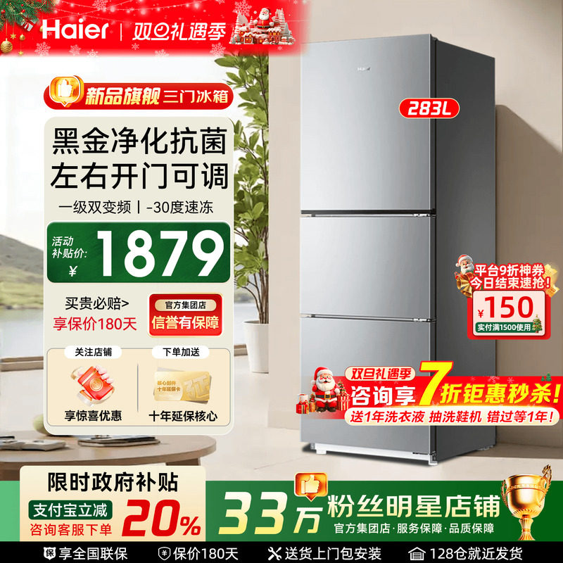 25年新品】haier海尔电冰箱283L三门一级能效风冷家用小型旗舰店