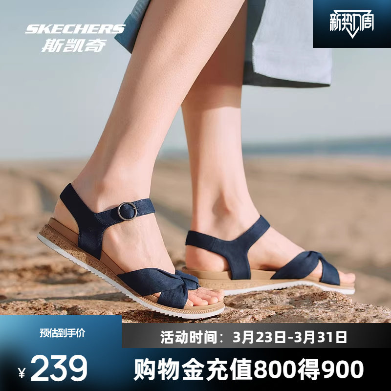 斯凯奇女士时尚沙滩凉鞋夏季新品海军蓝黑色纽带蝴蝶结沙滩鞋