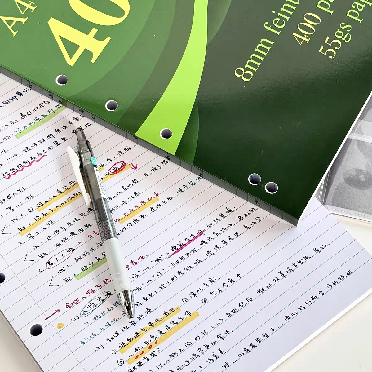 A4加厚400页薄脆本高颜值美式学生考研考公考编记事横线笔记本55g