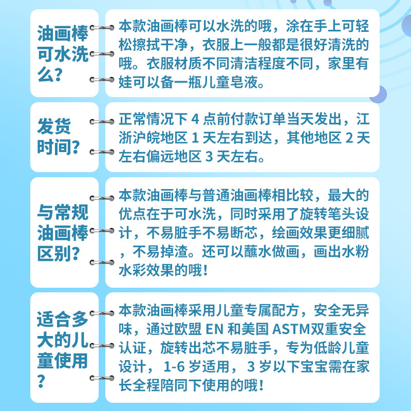 油画棒24色蜡笔幼儿园专用儿童安全无毒不脏手不沾手盒装水溶性可水洗宝宝小学生画画炫彩棒12色