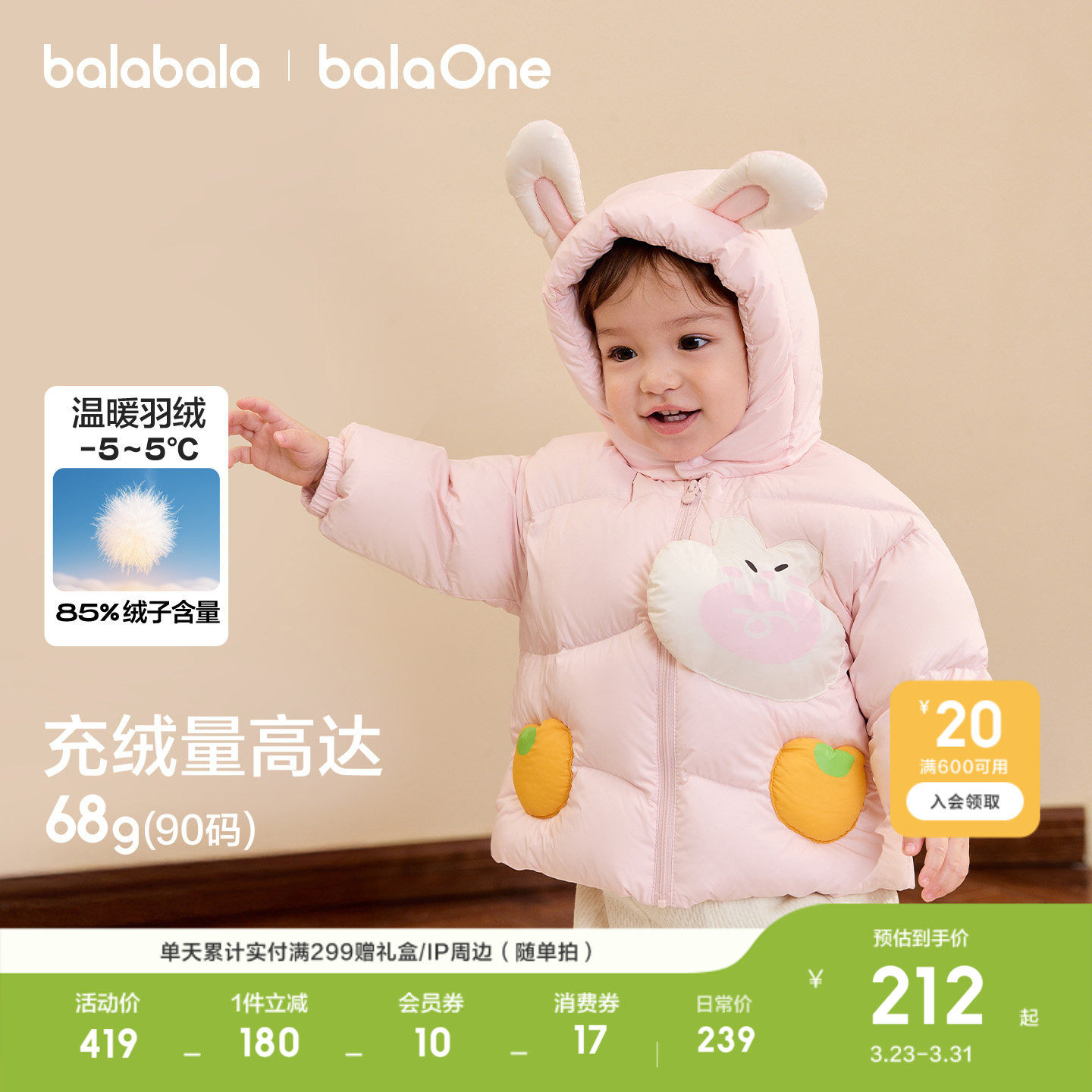 巴拉巴拉宝宝羽绒服冬装男童女童加厚保暖连帽外套萌2025新款上衣