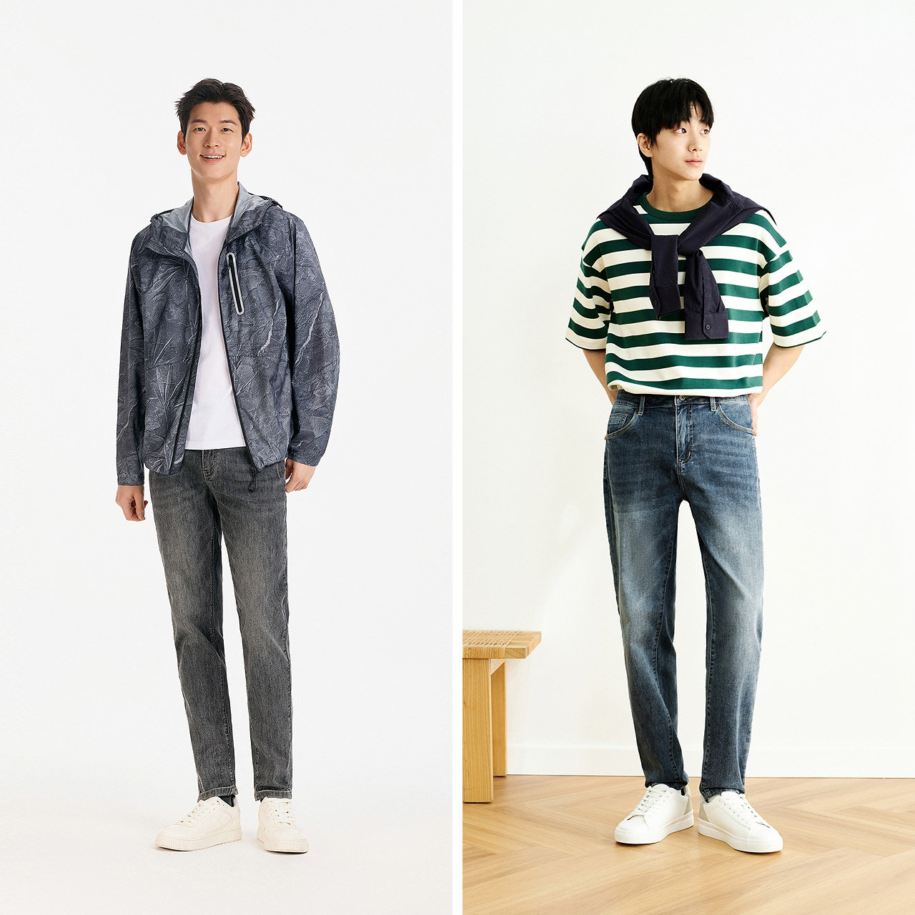 森柔|森马牛仔裤男夏季复古水洗合体小脚长裤微弹多色立体剪裁裤