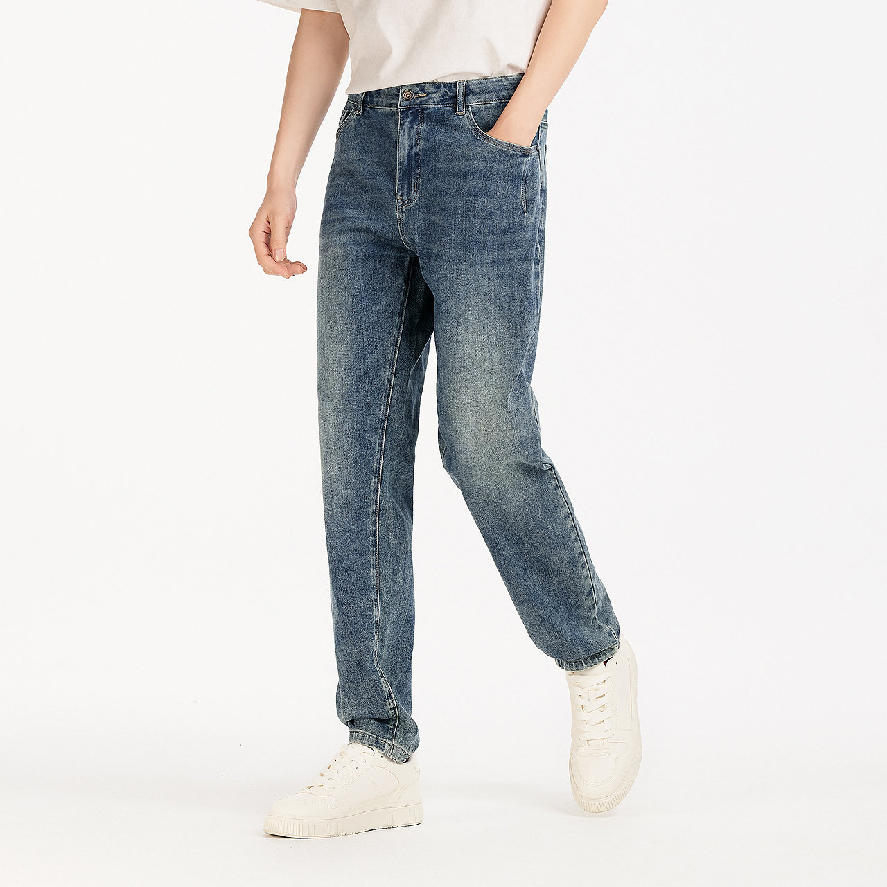 森柔牛仔森马牛仔裤男款2025新直筒裤长裤原色复古美式水洗宽松潮