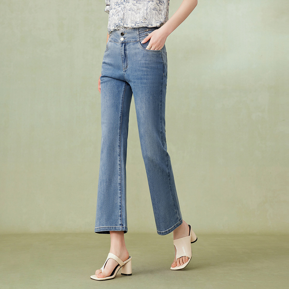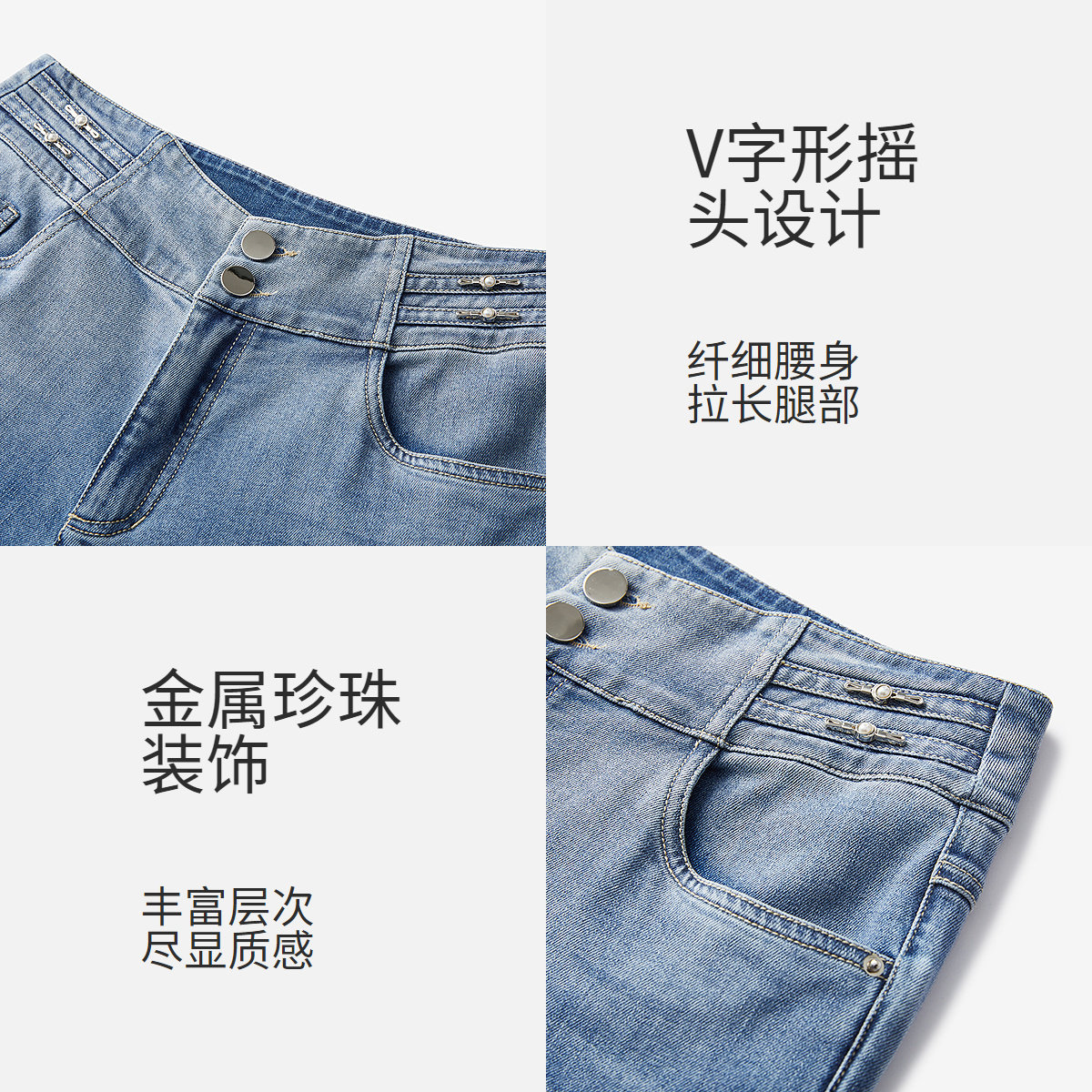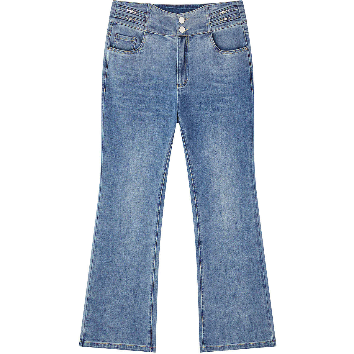 twosweet【超级裤神】四面弹重塑大长腿高腰直筒微喇叭原色牛仔裤