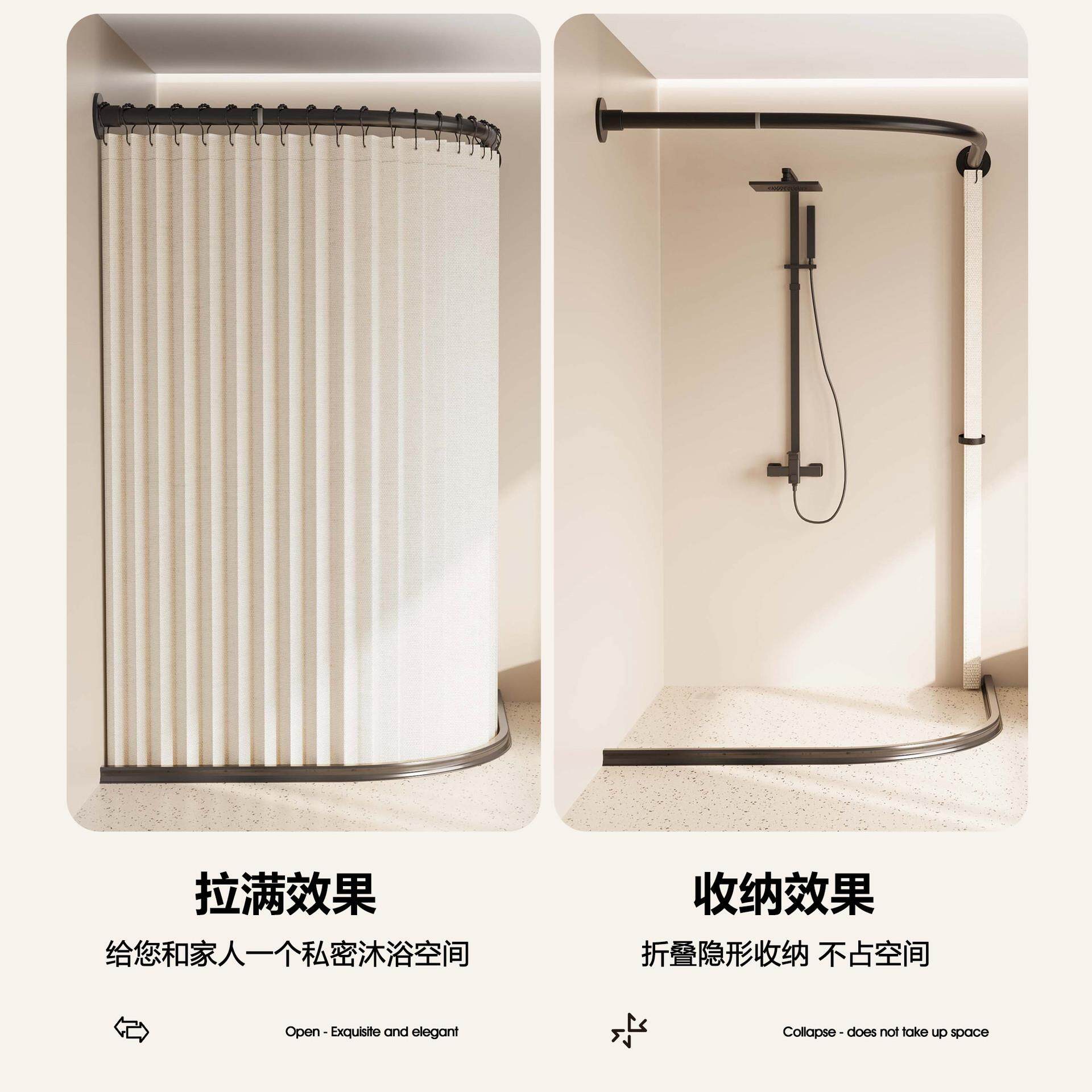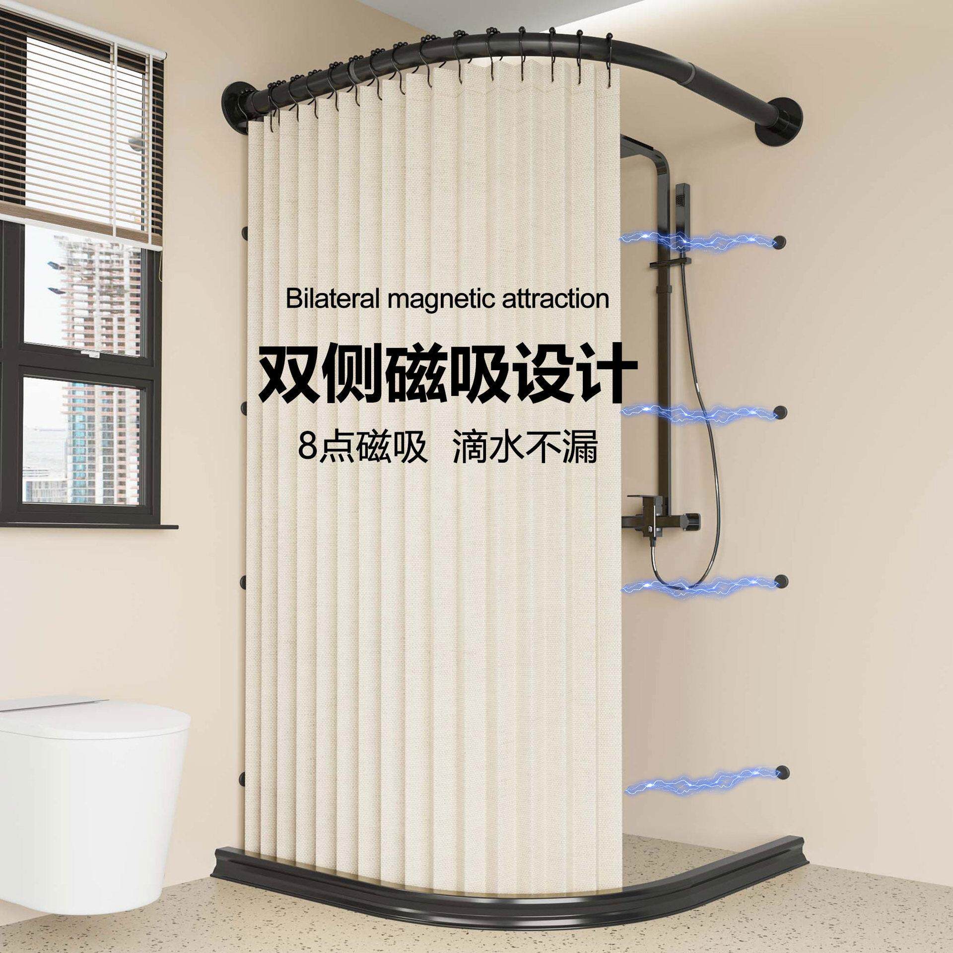 浴室免打孔隐形磁吸折叠浴帘卫生间弧形L形淋浴房防水防霉浴帘隔
