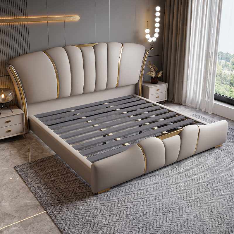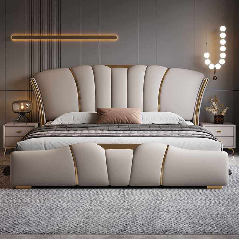 真皮床软包实木婚床双人储物1.8m榻榻米单人床简约风多功能皮艺床