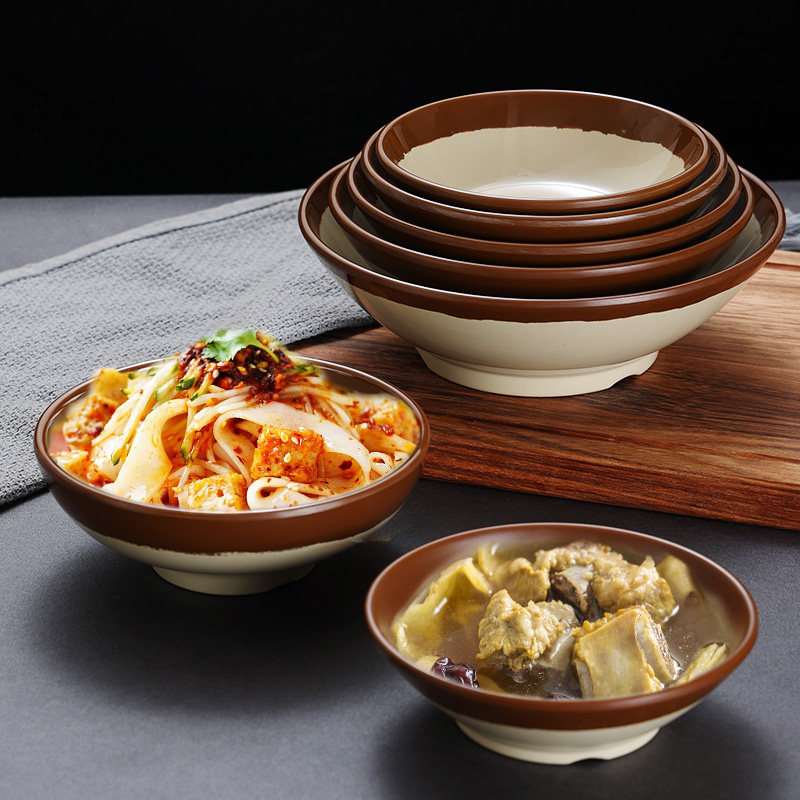 密胺怀旧复古土碗市井重庆老火锅盘子扣肉酒碗仿瓷土陶简约餐具