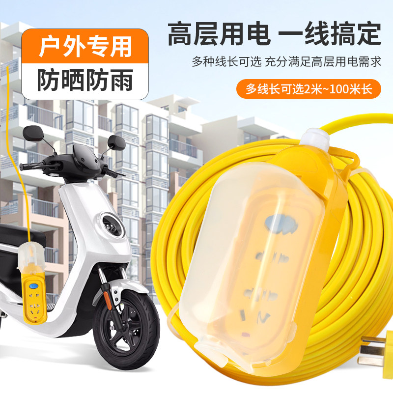 充电长线排插带线插座接线板电动车延长线2-40插电脑三插二插风扇