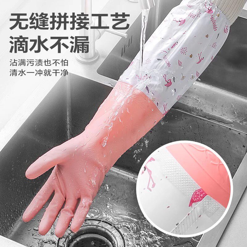 冬天洗碗手套家务厨房耐用加绒加厚保暖款男女橡胶洗衣服加长手套