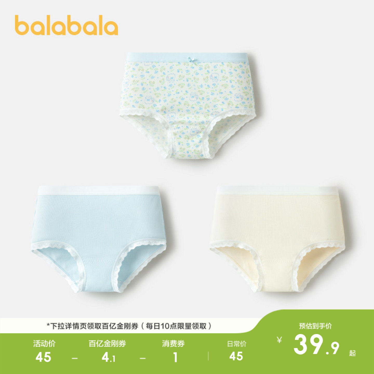 巴拉巴拉女童内裤棉a类儿童三角短裤子亲肤中大童小童宝宝三条装