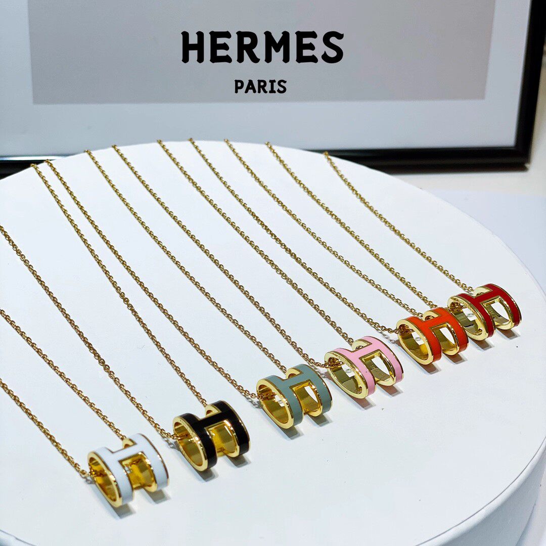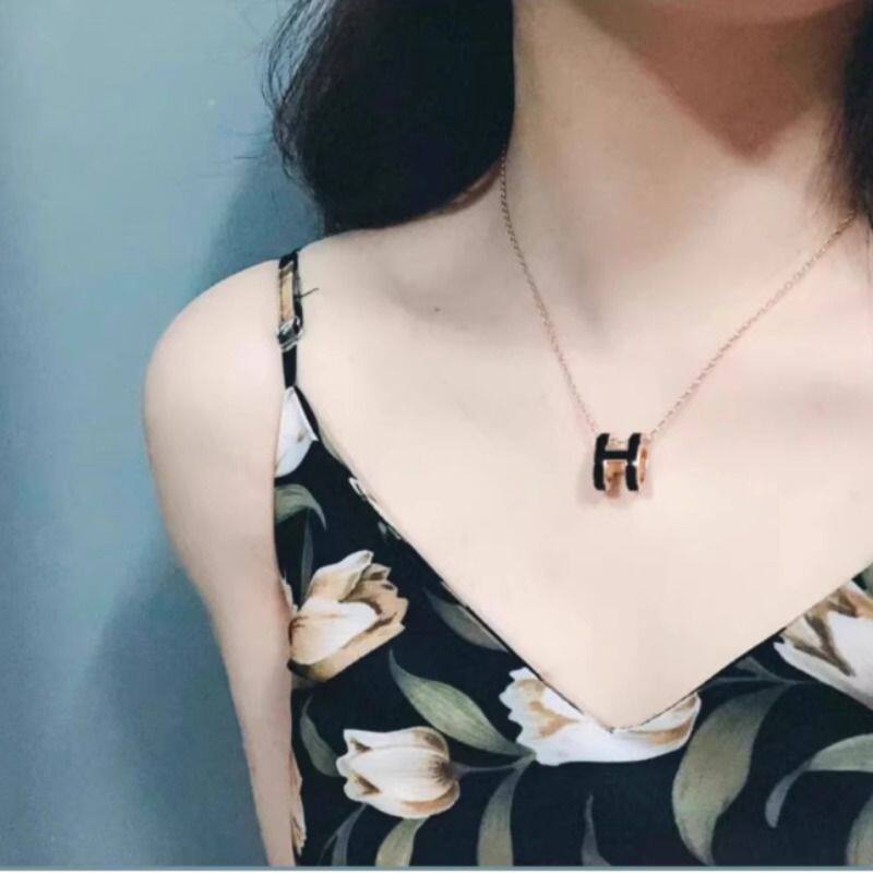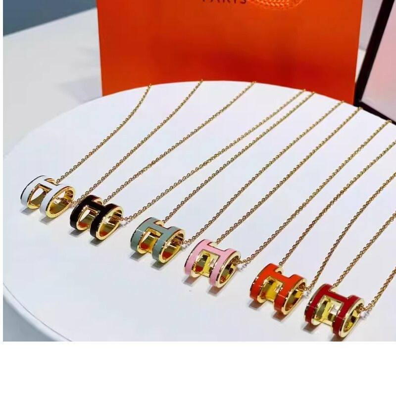 高版H字母珐琅纯银项链彩整件专柜级女轻奢感镀18k金玫瑰金镀金