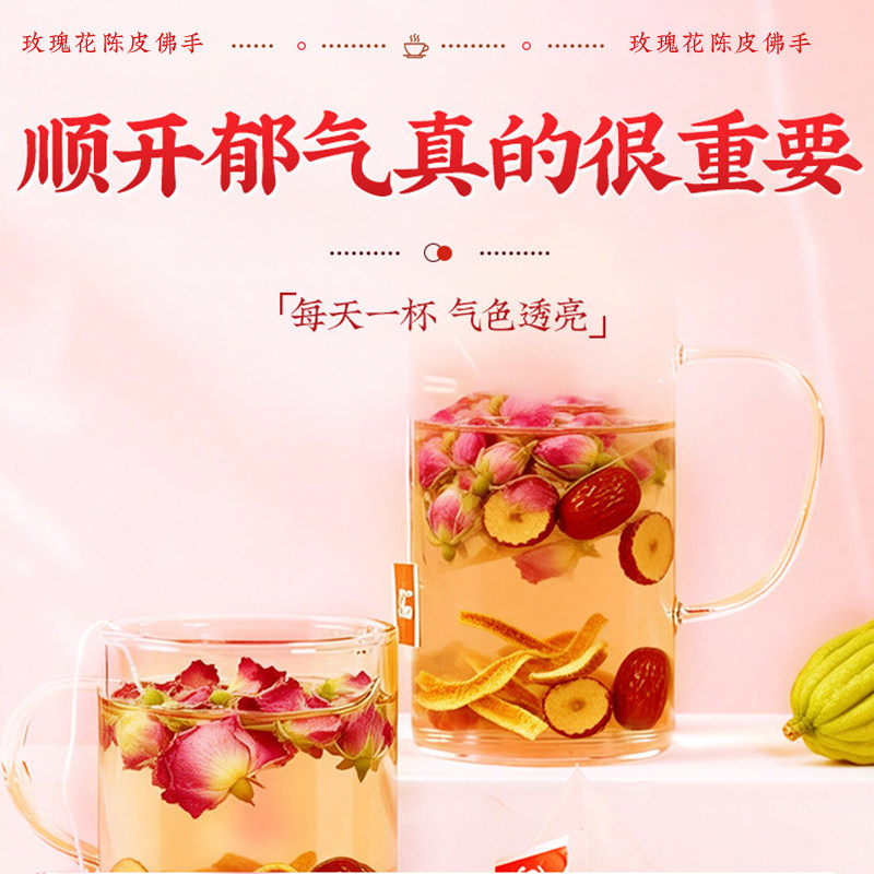 玫瑰花陈皮佛手茶肝疏解郁肝舒气结调理泡水养生茶包官方正品花茶