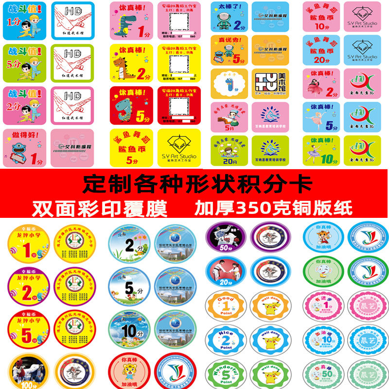 1000张!小学生积分卡定制培训机构幼儿园小朋友班级管理儿童学习舞蹈跆拳道篮球围棋英语尚学积分币奖励卡