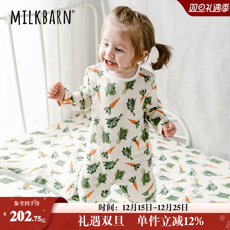 Milkbarn宝宝连体服夏季空调房印花睡衣婴儿长袖哈衣爬服