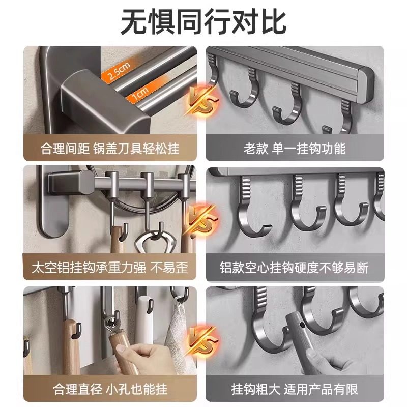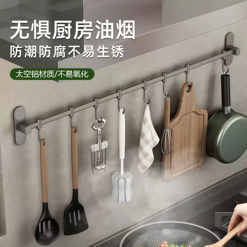 厨房挂钩壁挂式免打孔多功能置物架排钩挂杆收纳挂架锅盖铲子勺子
