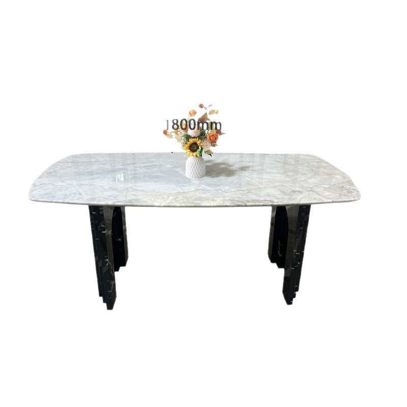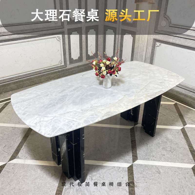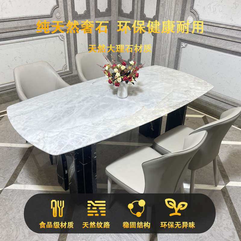 天然大理石长餐桌意式极简轻奢防渗透易清洁小户型马肚形异型饭桌