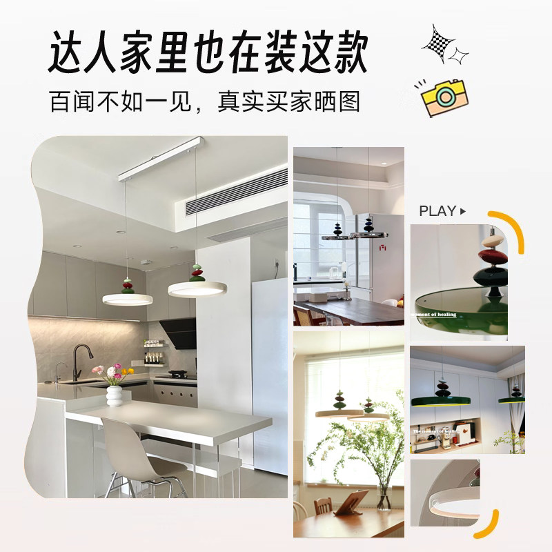 餐厅吊灯双头M豆飞碟灯中古奶油风餐桌灯现代简约岛台灯具