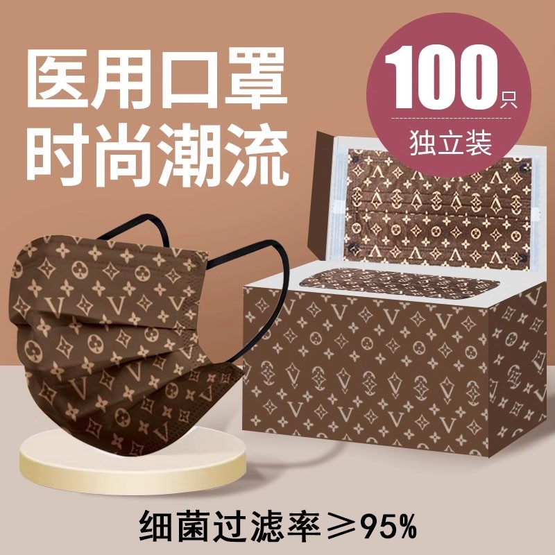 医用口罩l印花v高颜值女瘦脸新款一次性医疗夏季粉尘防护新年时尚