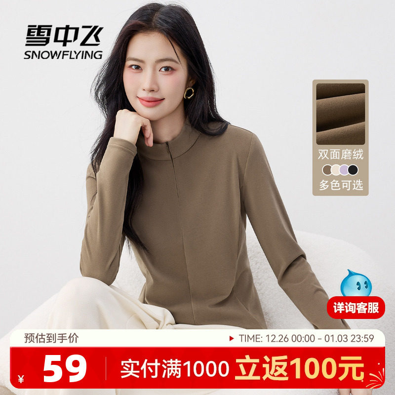 雪中飞半拉链仿德绒打底衫女26新款秋保暖内搭女士立领长袖t恤PC