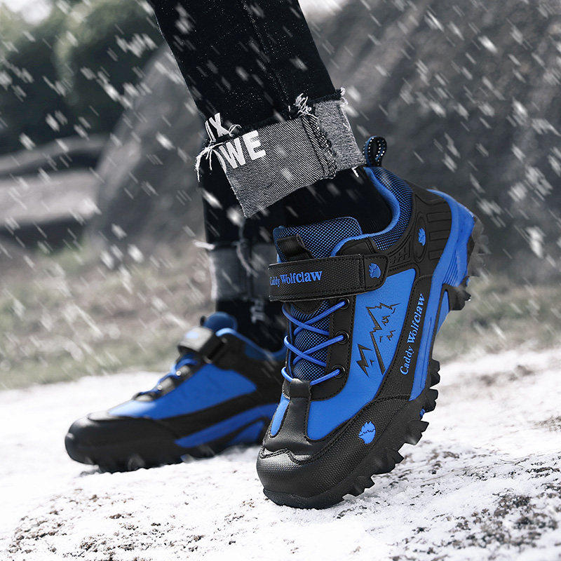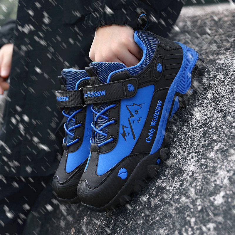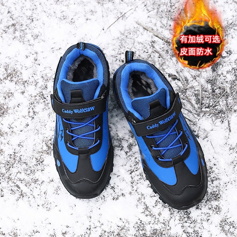 冬季男鞋免系鞋带魔术贴初中学生棉鞋加绒保暖青少年中大童跑步鞋