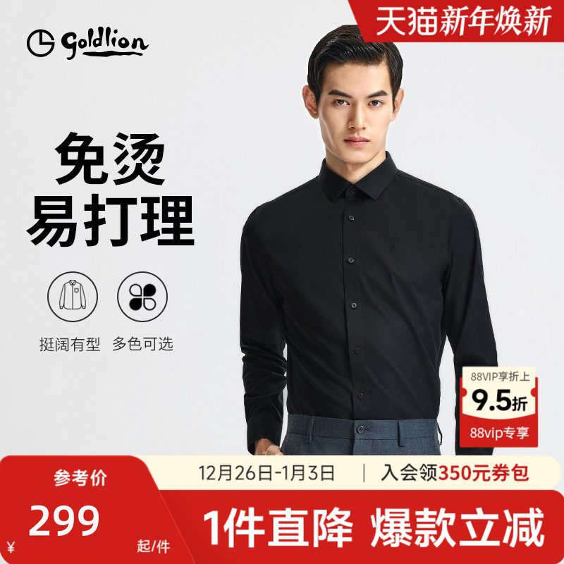 【免烫衬衫】金利来秋冬男士长袖黑衬衫易打理商务休闲长袖衬衣