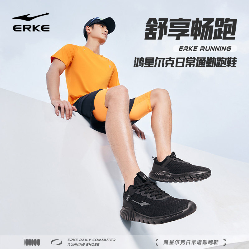 鸿星尔克轻便软底运动鞋夏季新款男鞋跑步鞋减震黑色爸爸鞋男鞋子