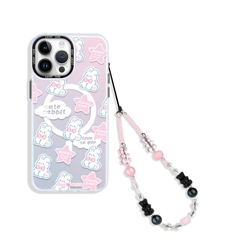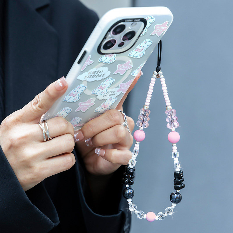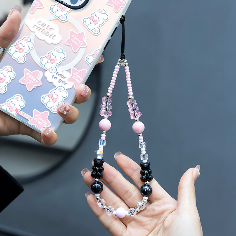 MASFIEL × 粉黑冰晶小熊手机挂链挂绳炫彩短款挂链绳子适用苹果手机壳可爱挂件饰链ins风防丢绳网红时尚饰品