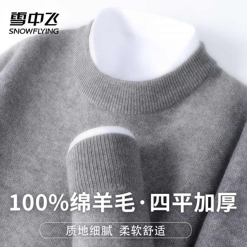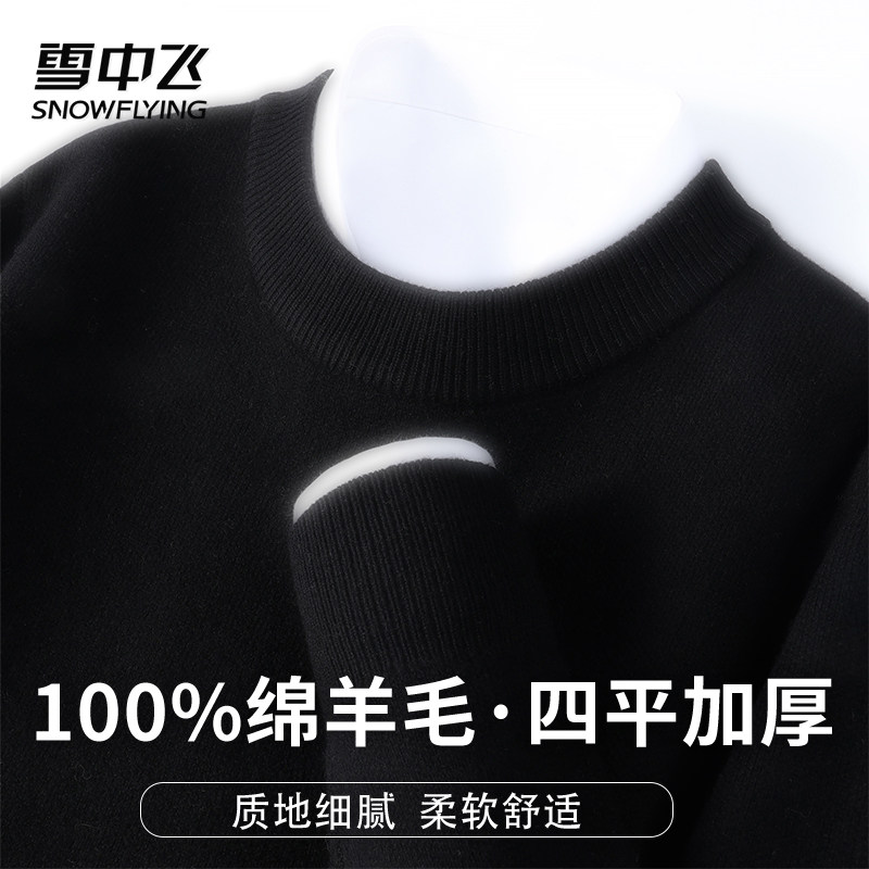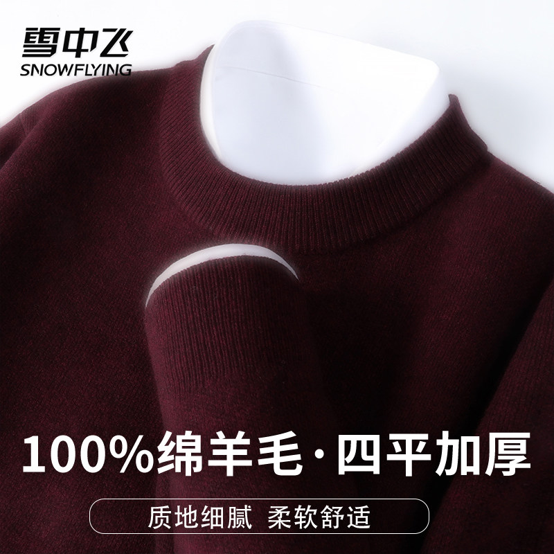 雪中飞【455g高克重100%绵羊毛】圆领纯色男士温暖百搭羊毛衫W