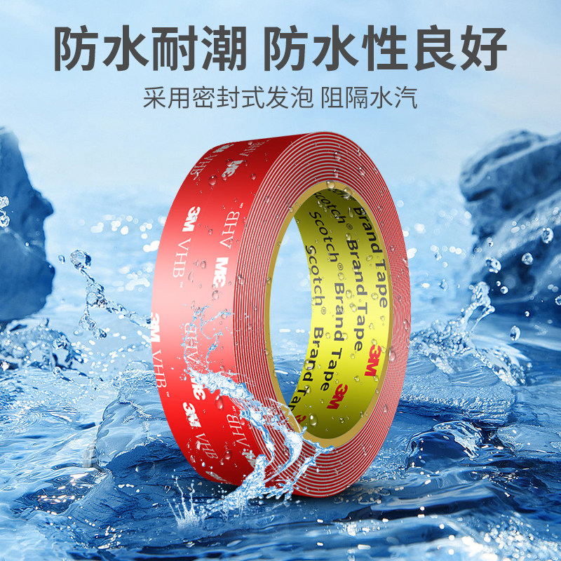 3M4918纳米双面胶强力高粘度汽车专用耐高温加厚VHB亚克力水晶家居装饰摆件专用墙面防水无痕固定透明胶带