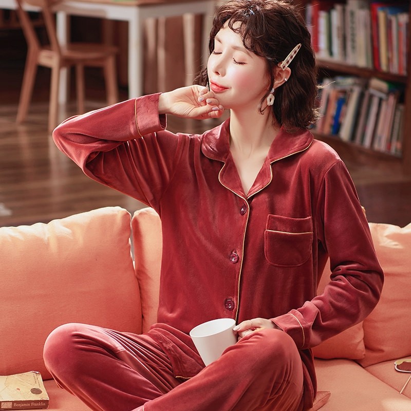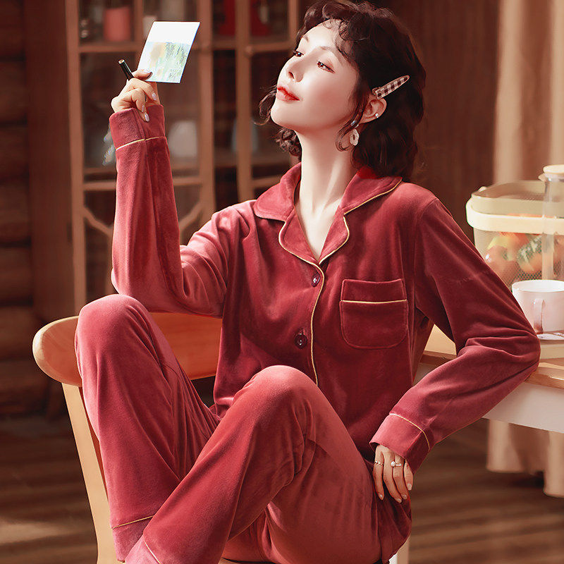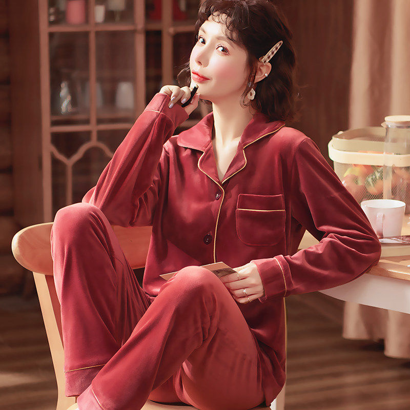 红豆睡衣女春秋加厚珊瑚绒海岛绒套装女士秋冬大码长袖法兰绒家居