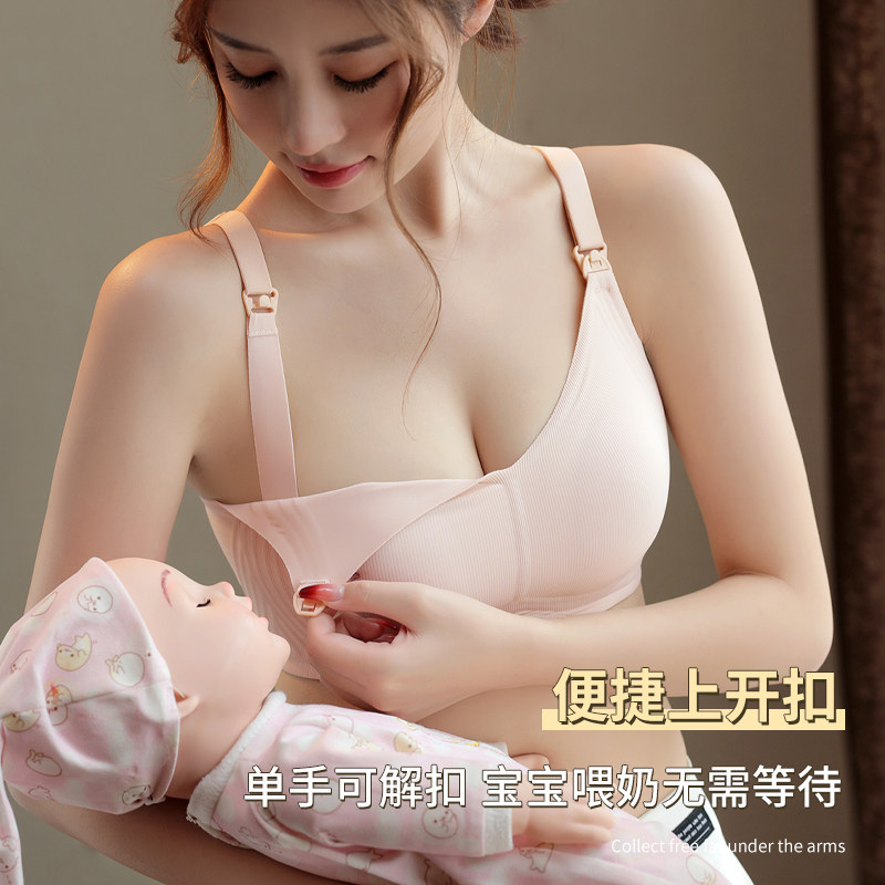 草本初色孕妇分娩期喂奶上开扣薄杯兔耳杯内衣哺乳莫代尔大码文胸