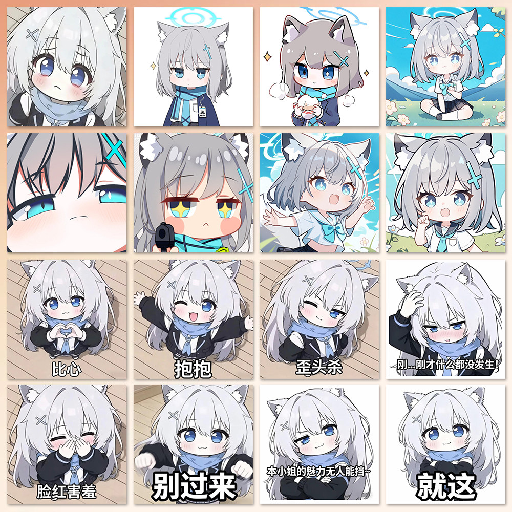 324张砂狼白子Q版表情包贴纸蔚蓝档案热门游戏卡通周边DIY装饰贴