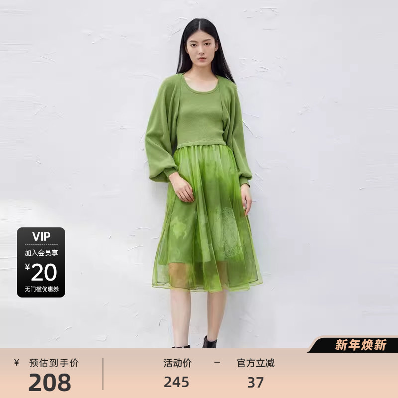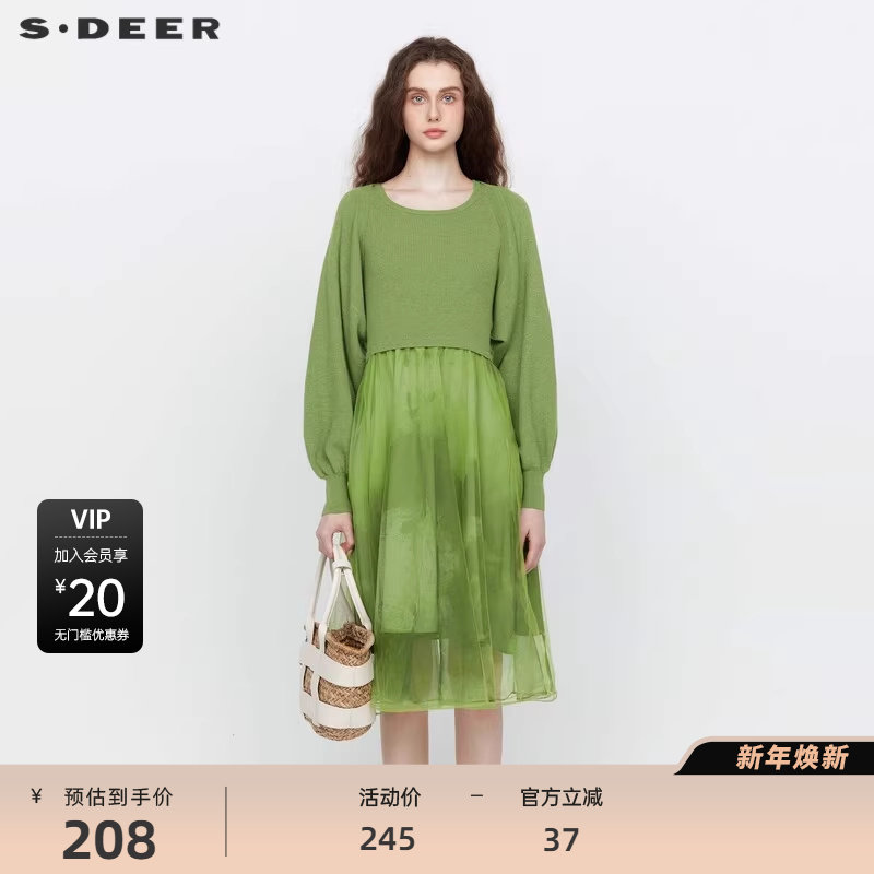 sdeer圣迪奥女装秋晕染网纱针织背心连衣裙套装S23381402
