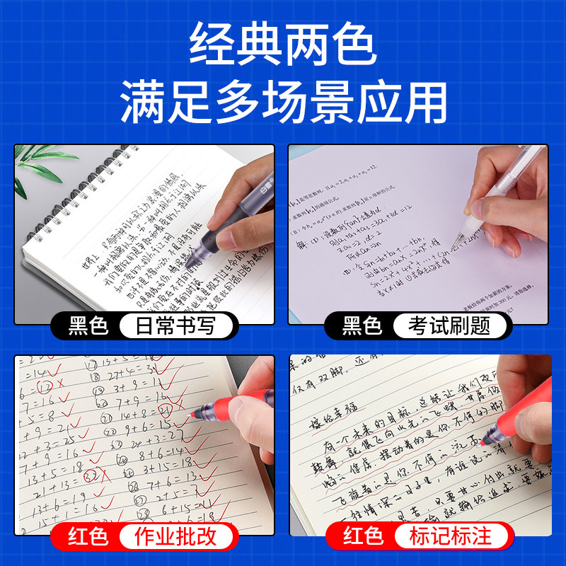 晨光按动中性笔黑色笔速干顺滑高颜值红蓝碳素笔考试办公用签字笔